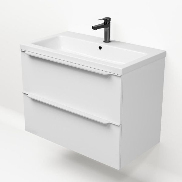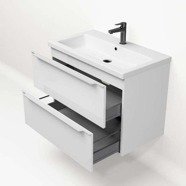 | | Bellanti Lucilla/Amelia badmeubel 80x46 2 softclose laden wit hoogglans met greep naar keuze keramische wastafel wit glans met 1 kraangat |