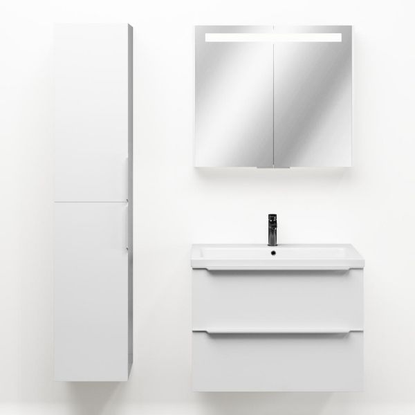 | Bellanti Lucilla/Amelia badmeubel 80x46 2 softclose laden wit hoogglans met greep naar keuze keramische wastafel wit glans met 1 kraangat |