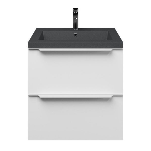 | | Bellanti Lucilla/Esta-Q badmeubel 60x46 2 softclose laden wit mat met greep naar keuze quartz wastafel mat grijs met 1 kraangat |