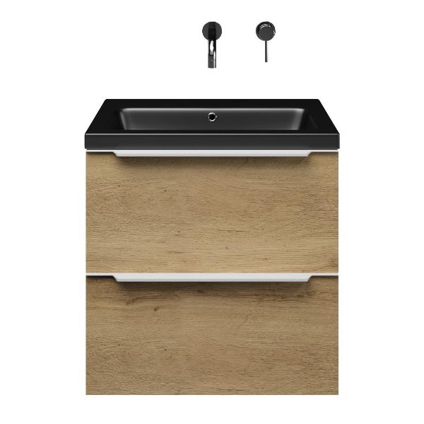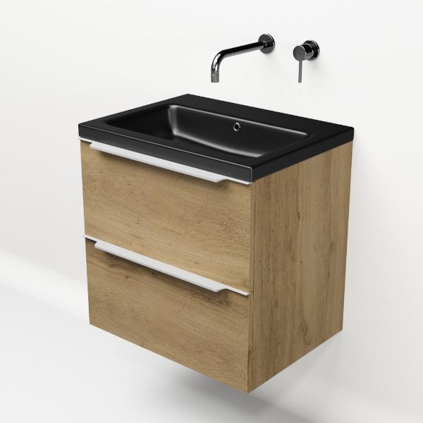 | | Bellanti Lucilla/Amelia badmeubel 60x46 2 softclose laden warm eiken met greep naar keuze keramische wastafel zwart mat zonder kraangaten |