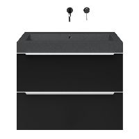 | | Bellanti Lucilla/Esta-Q badmeubel 80x46 2 softclose laden mat zwart met greep naar keuze quartz wastafel mat grijs zonder kraangat |