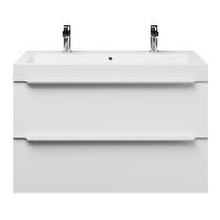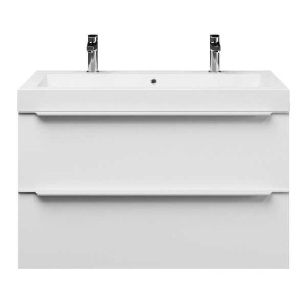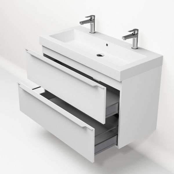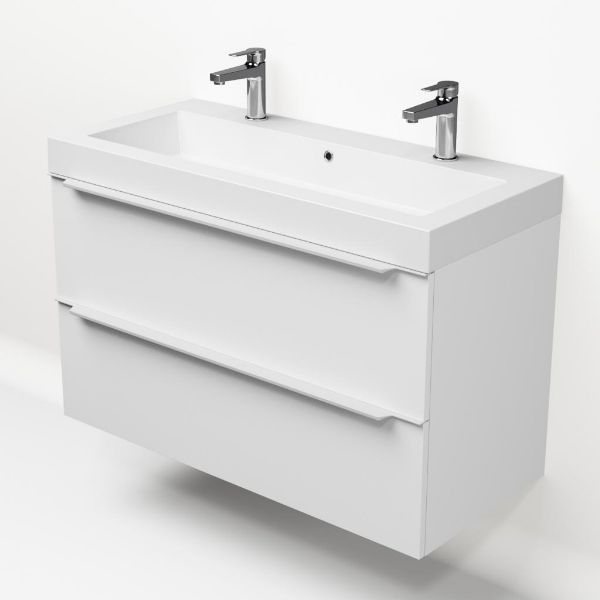 Bellanti Lucilla/Esta badmeubel 100x46 2 softclose laden mat wit met greep naar keuze polystone wastafel wit met 2 kraangaten