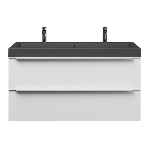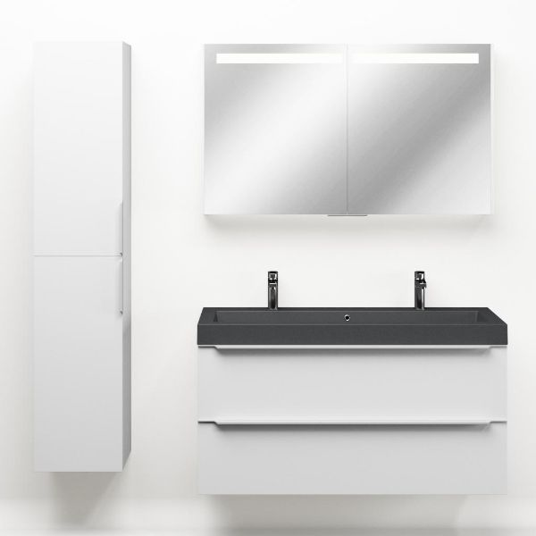 Bellanti Lucilla/Esta-Q badmeubel 120x46 2 softclose laden mat wit met greep naar keuze quartz wastafel mat grijs met 2 kraangaten