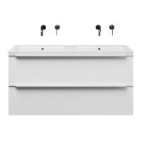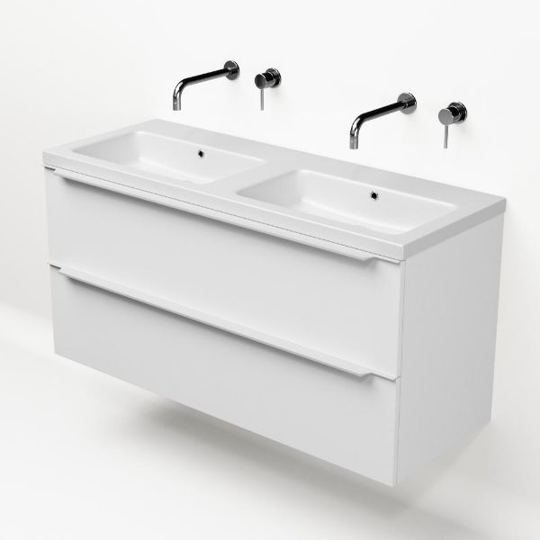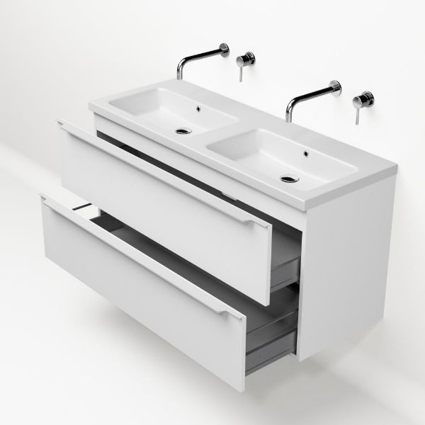 | Bellanti Lucilla/Amelia badmeubel 120x46 2 softclose laden mat wit met greep naar keuze keramische wastafel dubbel wit mat zonder kraangaten |