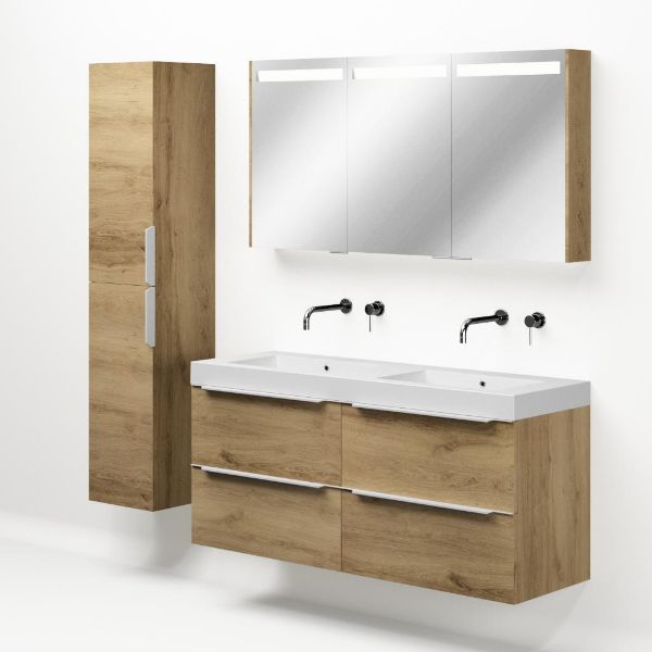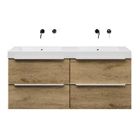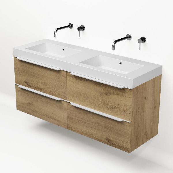 Bellanti Lucilla/Esta-Q badmeubel 140x46 4 softclose laden warm eiken met greep naar keuze quartz wastafel dubbel mat wit zonder kraangaten