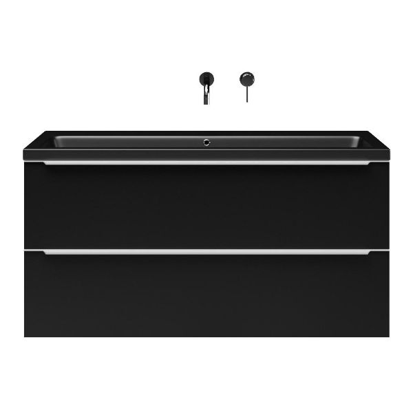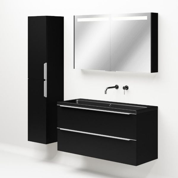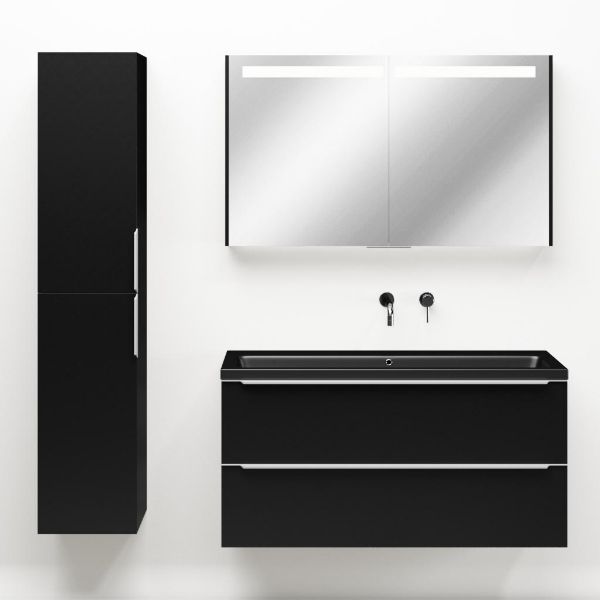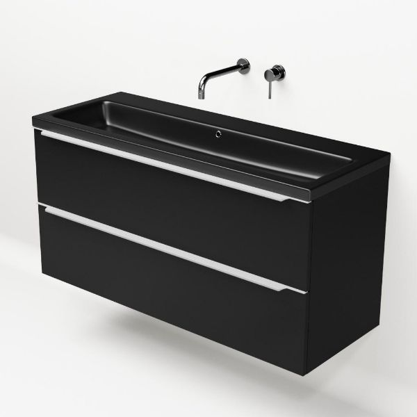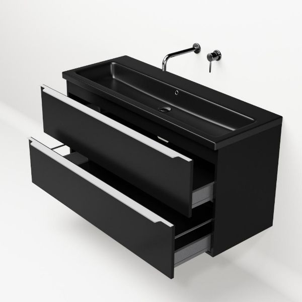| Bellanti Lucilla/Amelia badmeubel 120x46 2 softclose laden mat zwart met greep naar keuze keramische wastafel mat zwartzonder kraangaten |