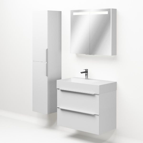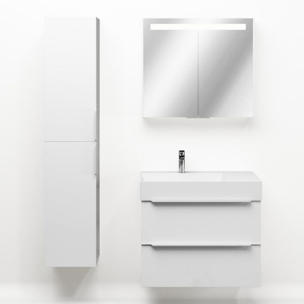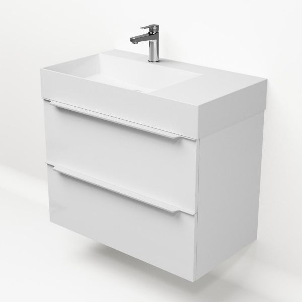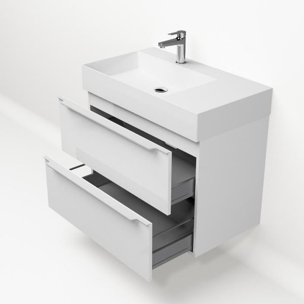 | Bellanti Lucilla/Azzurra badmeubel 80x46 2 softclose laden wit hoogglans met greep naar keuze keramische wastafel links wit glans met 1 kraangat |