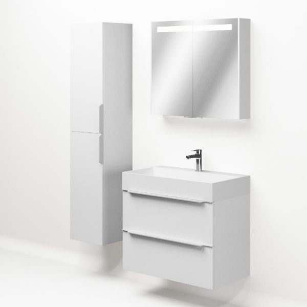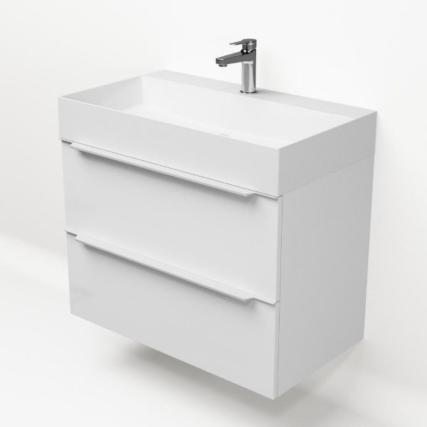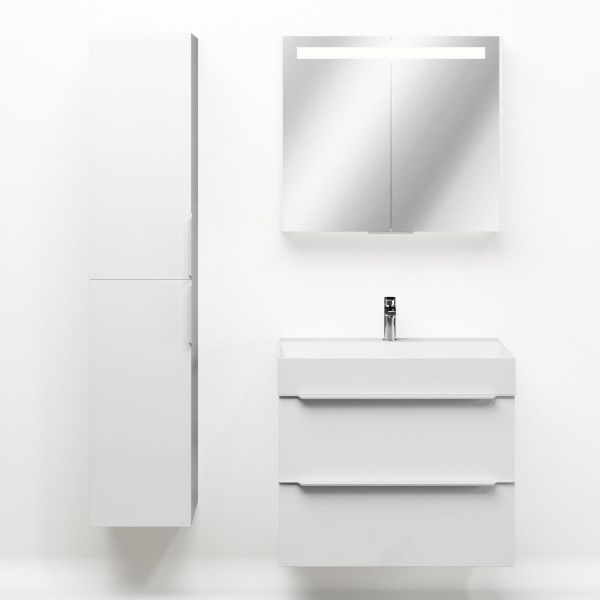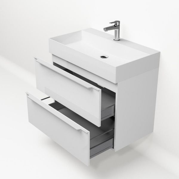 | Bellanti Lucilla/Azzurra badmeubel 80x46 2 softclose laden wit hoogglans met greep naar keuze keramische wastafel wit glans met 1 kraangat |