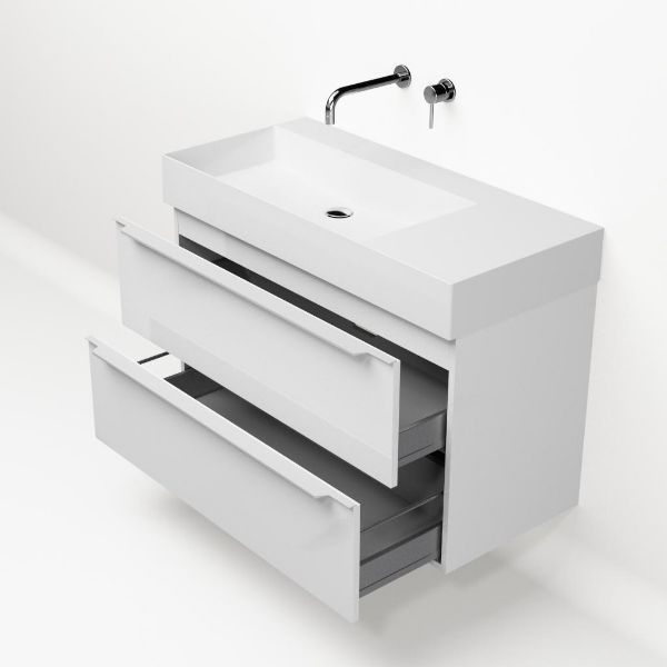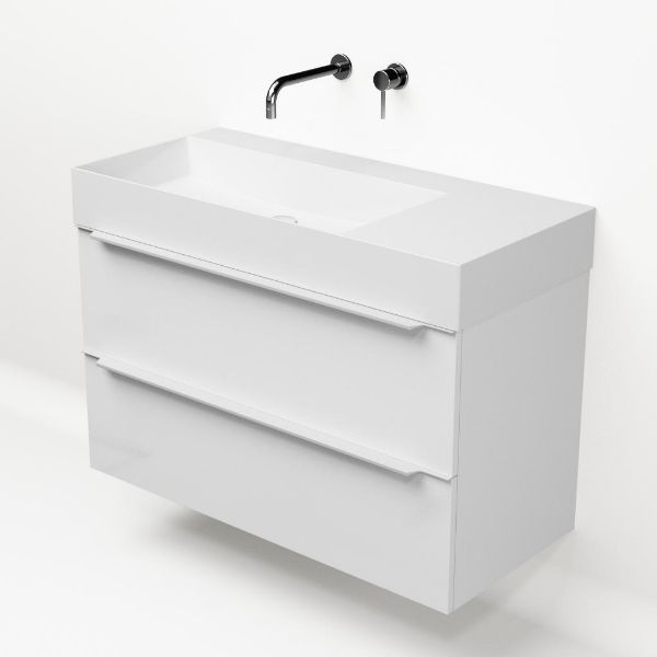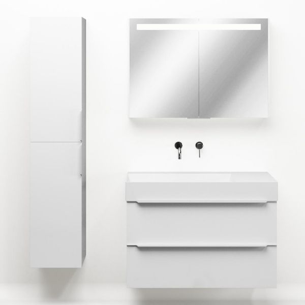| | Bellanti Lucilla/Azzurra badmeubel 100x46 2 softclose laden hoogglans wit greep naar keuze keramische wastafel links wit glans zonder kraangaten |