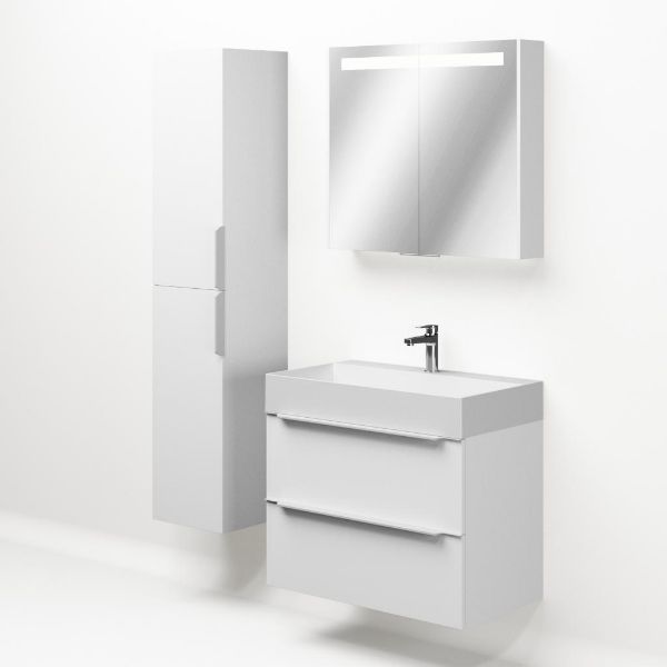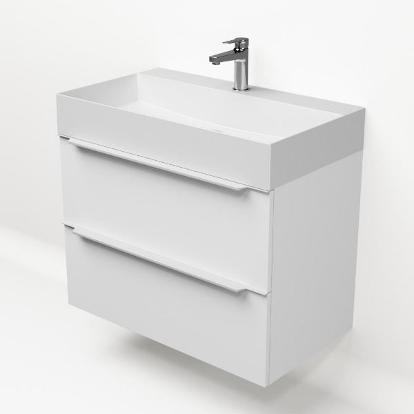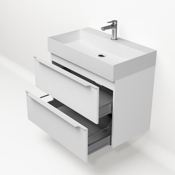 | | Bellanti Lucilla/Azzurra badmeubel 80x46 2 softclose laden mat wit met greep naar keuze keramische wastafel wit mat met 1 kraangat |