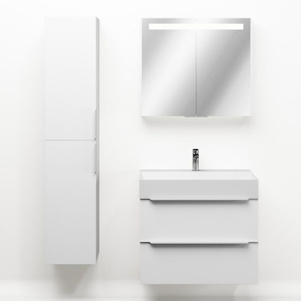 | Bellanti Lucilla/Azzurra badmeubel 80x46 2 softclose laden mat wit met greep naar keuze keramische wastafel wit mat met 1 kraangat |