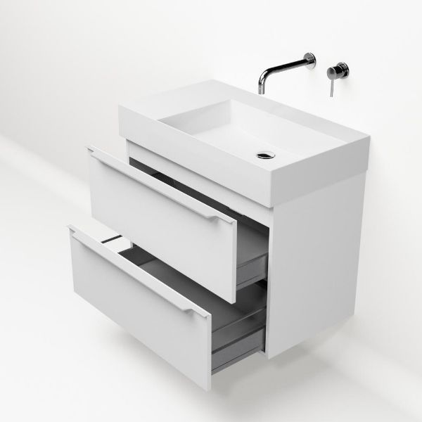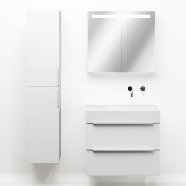 | | Bellanti Lucilla/Azzurra badmeubel 80x46 2 softclose laden mat wit greep naar keuze keramische wastafel rechts wit glans zonder kraangaten |