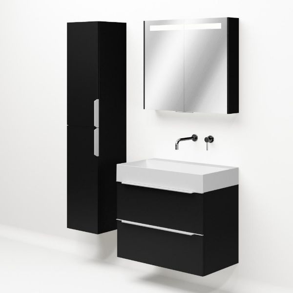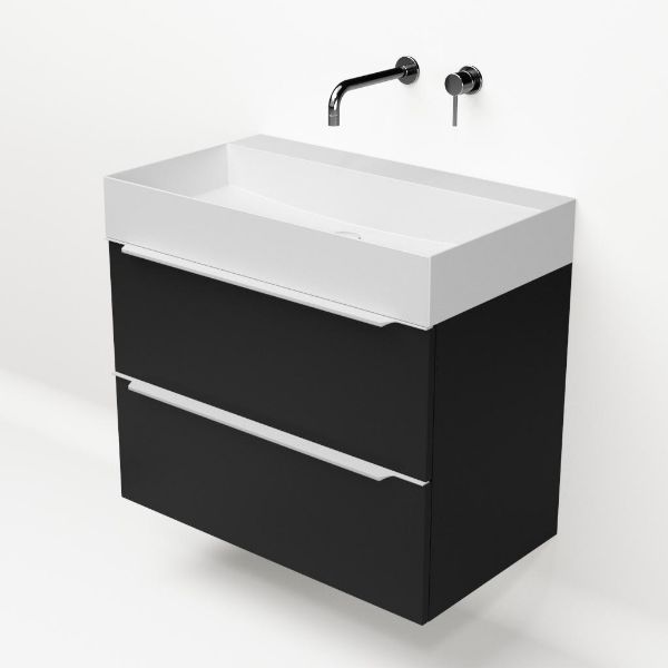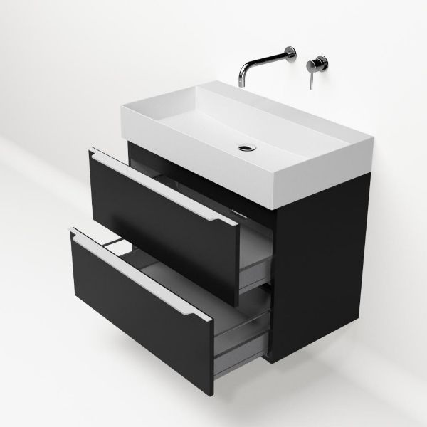 | | Bellanti Lucilla/Azzurra badmeubel 80x46 2 softclose laden mat zwart greep naar keuze keramische wastafel wit mat zonder kraangaten |