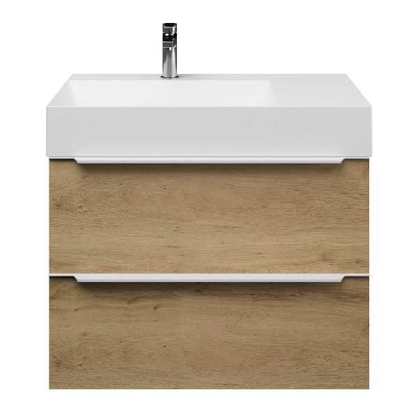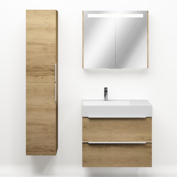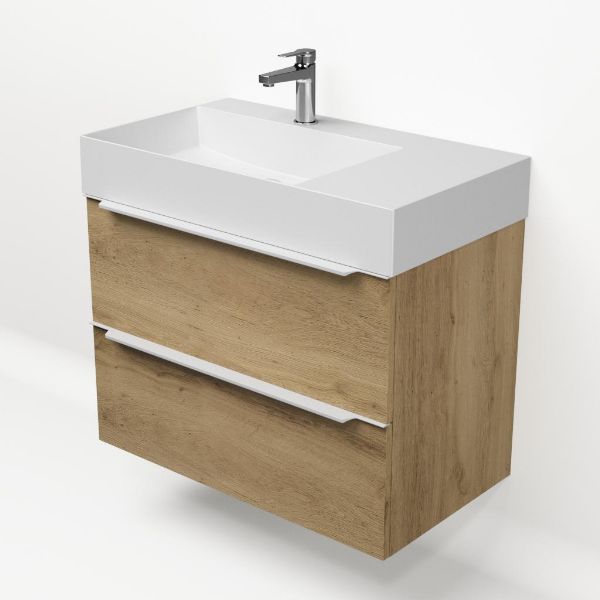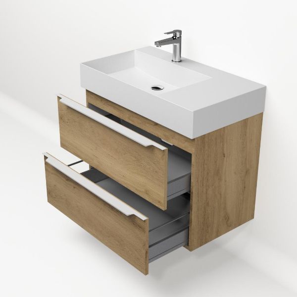| | Bellanti Lucilla/Azzurra badmeubel 80x46 2 softclose laden warm eiken met greep naar keuze keramische wastafel links wit mat met 1 kraangat |
