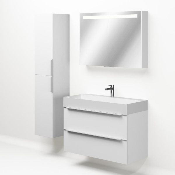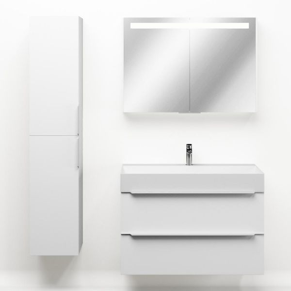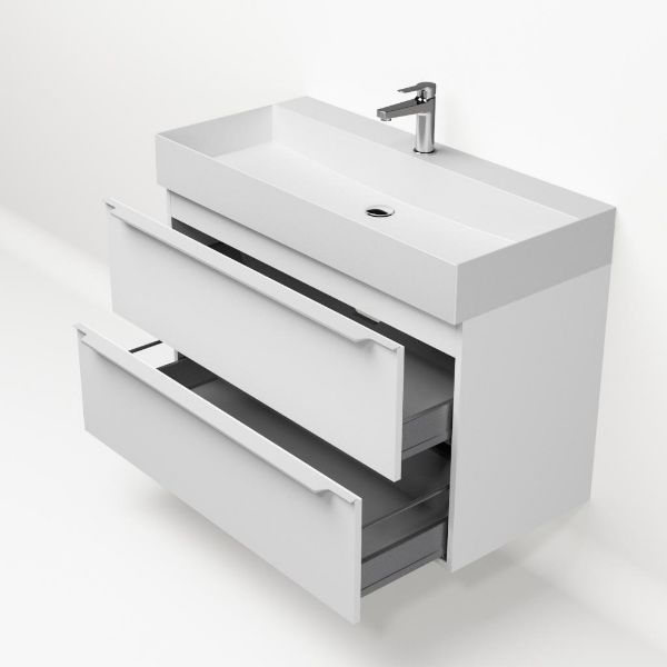 | Bellanti Lucilla/Azzurra badmeubel 100x46 2 softclose laden mat wit met greep naar keuze keramische wastafel wit mat met 1 kraangat |