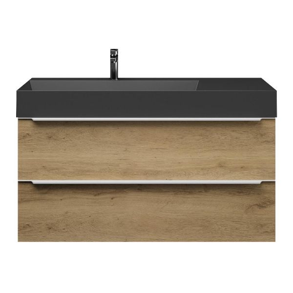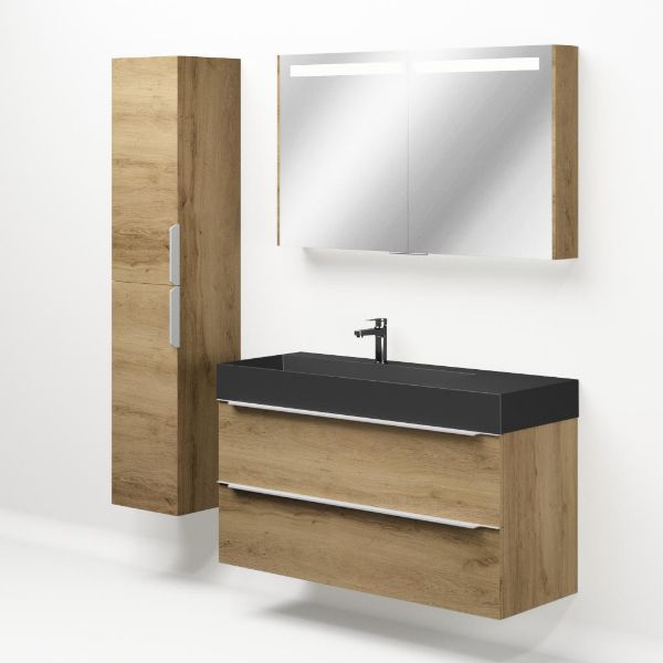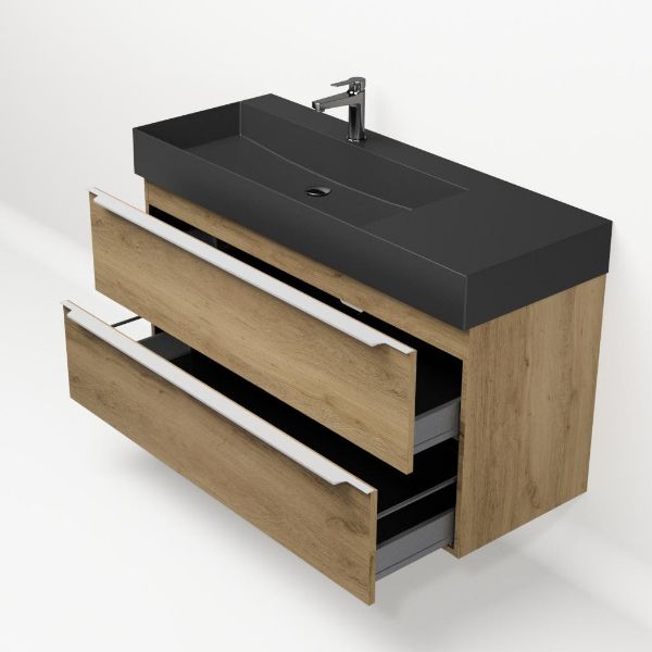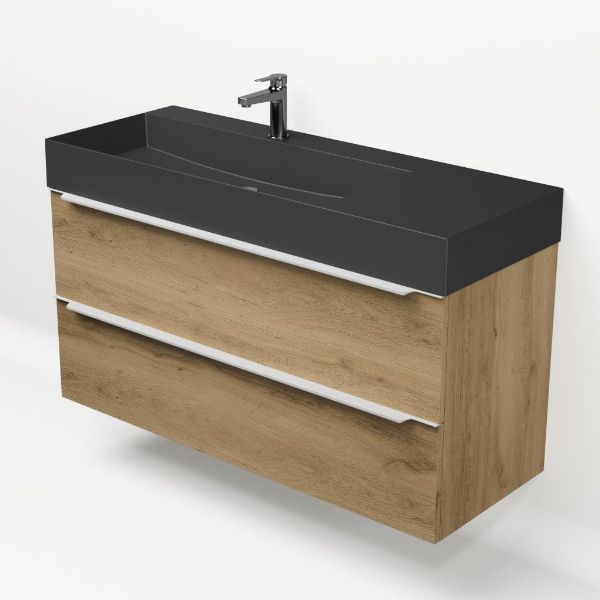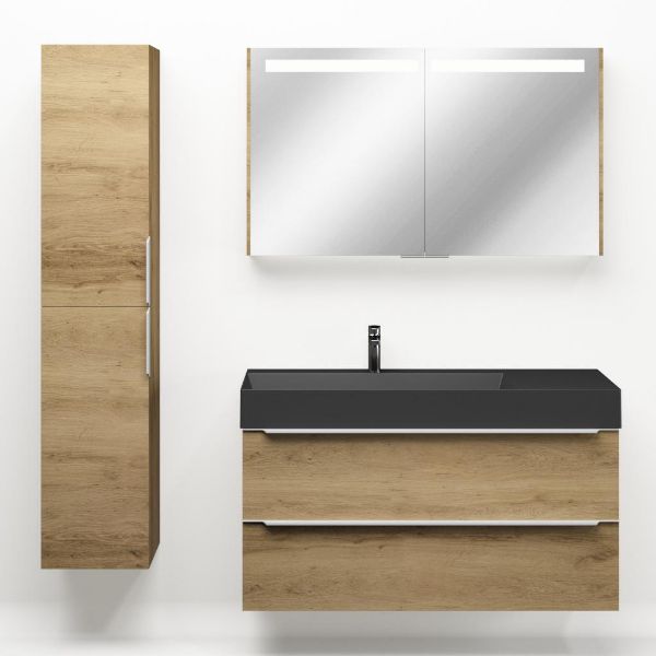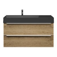 | Bellanti Lucilla/Azzurra badmeubel 120x46 2 softclose laden warm eiken met greep naar keuze keramische wastafel links antraciet mat met 1 kraangat |