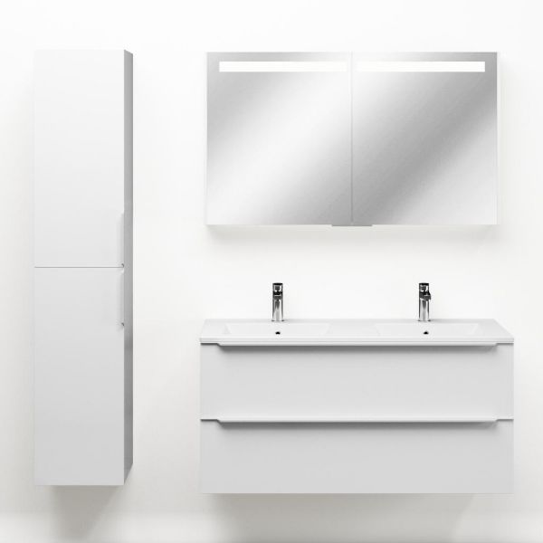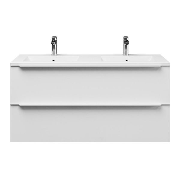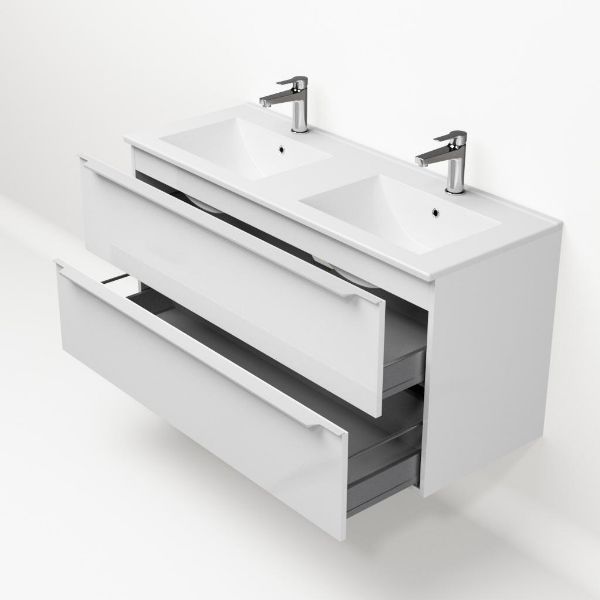 | Bellanti Lucilla/Faro badmeubel 120x46 2 softclose laden hoogglans wit met greep naar keuze keramisch wastafel dubbel wit met 2 kraangaten |