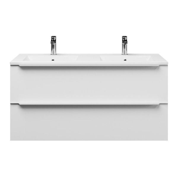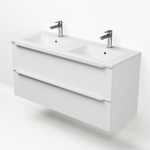| | Bellanti Lucilla/Faro badmeubel 120x46 2 softclose laden mat wit met greep naar keuze keramisch wastafel dubbel wit met 2 kraangaten |