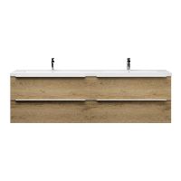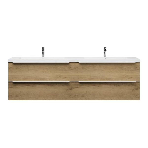 | | Bellanti Lucilla/Esta badmeubel 200x46 4 softclose laden warm eiken greeploos polystone dubbele wastafel wit met 2 kraangaten |