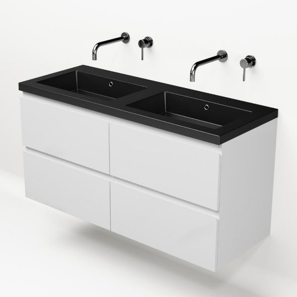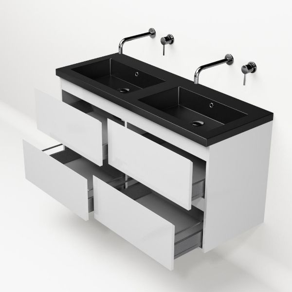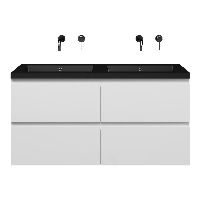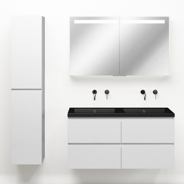 | | Bellanti Gisella/Esta badmeubel 120x46 4 softclose laden wit hoogglans greeploos polystone wastafel dubbel mat zwart zonder kraangaten |
