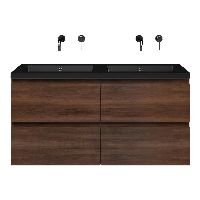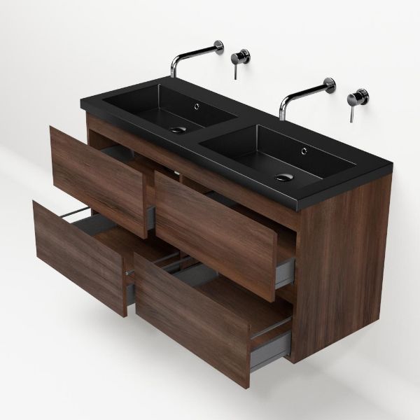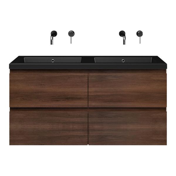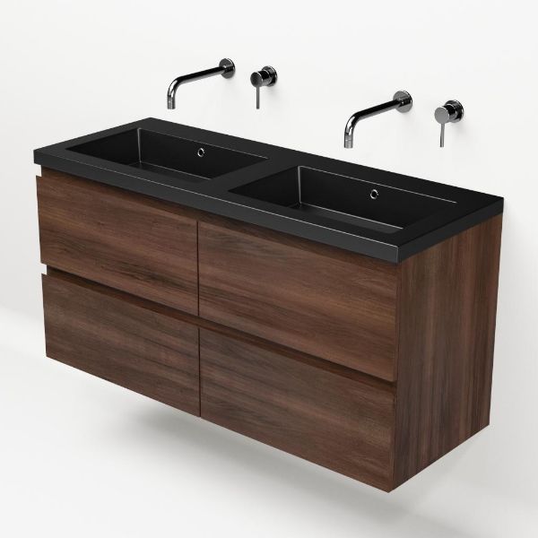 | | Bellanti Gisella/Esta badmeubel 120x46 4 softclose laden walnoot greeploos polystone wastafel dubbel mat zwart zonder kraangaten |