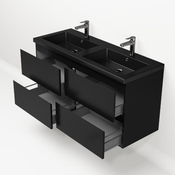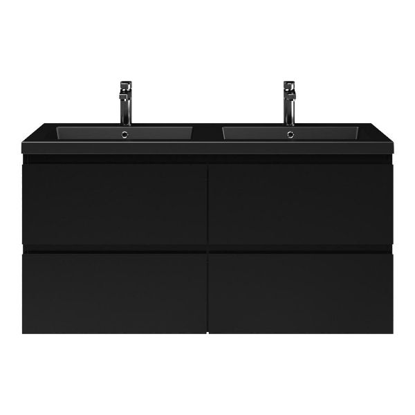 | | Bellanti Gisella/Esta badmeubel 120x46 4 softclose laden zwart mat greeploos polystone wastafel dubbel mat zwart met 2 kraangaten |