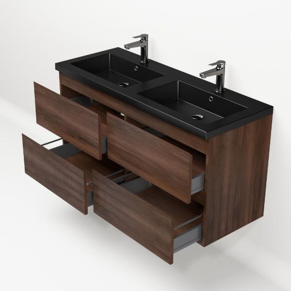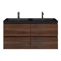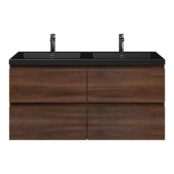 | | Bellanti Gisella/Esta badmeubel 120x46 4 softclose laden walnoot greeploos polystone wastafel dubbel mat zwart met 2 kraangaten |