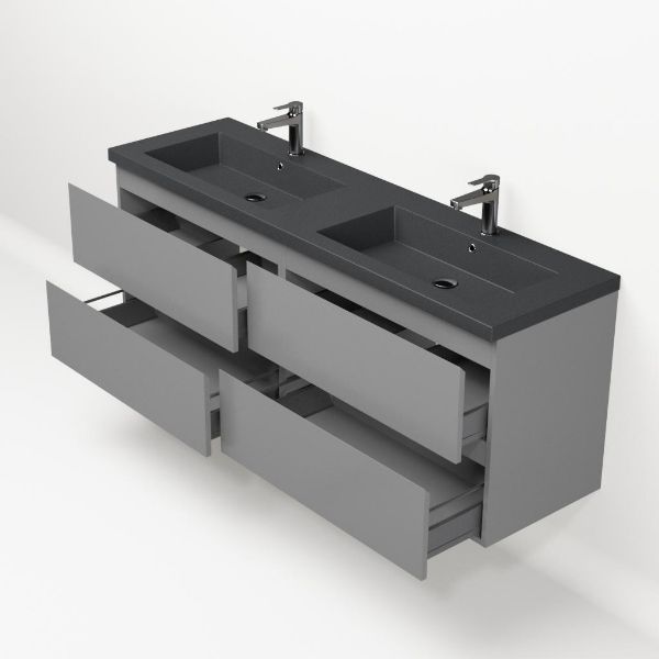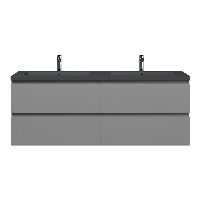 Bellanti Gisella/Esta-Q badmeubel 160x46 4 softclose laden mat grijs greeploos polystone dubbele wastafel mat grijs met 2 kraangaten