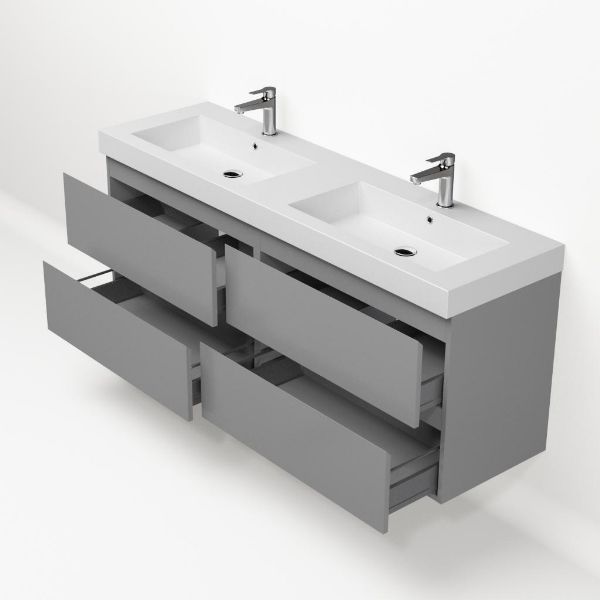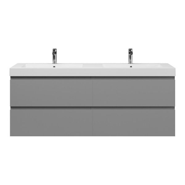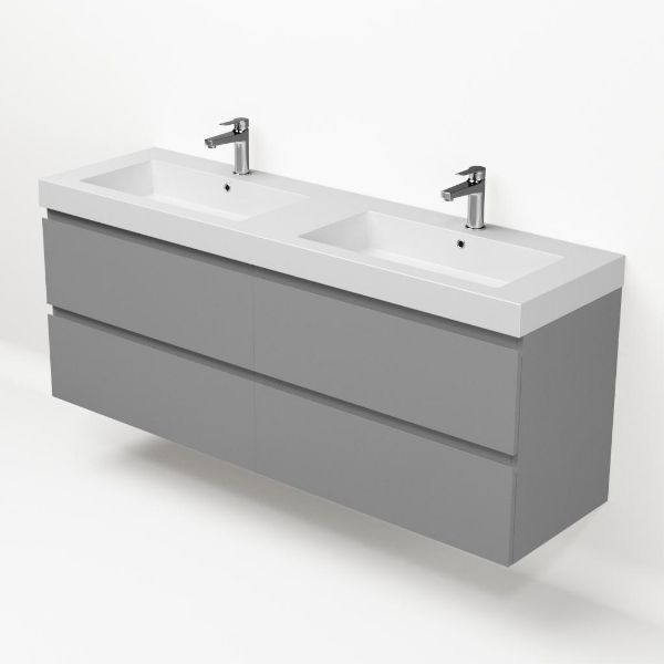 | | Bellanti Gisella/Esta-Q badmeubel 160x46 4 softclose laden mat grijs greeploos polystone dubbele wastafel mat wit met 2 kraangaten |