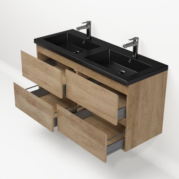 | Bellanti Elena/Esta badmeubel 120x46 4 softclose laden olm greeploos polystone wastafel dubbel mat zwart met 2 kraangaten |