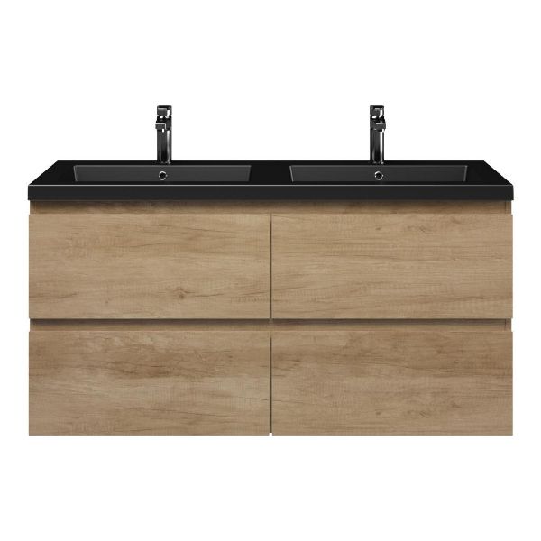 | | Bellanti Elena/Esta badmeubel 120x46 4 softclose laden olm greeploos polystone wastafel dubbel mat zwart met 2 kraangaten |