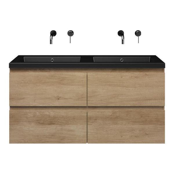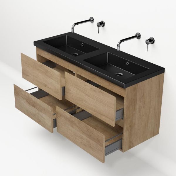 | | Bellanti Elena/Esta badmeubel 120x46 4 softclose laden olm greeploos polystone wastafel dubbel mat zwart zonder kraangaten |