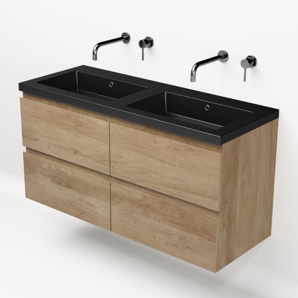 | Bellanti Elena/Esta badmeubel 120x46 4 softclose laden olm greeploos polystone wastafel dubbel mat zwart zonder kraangaten |