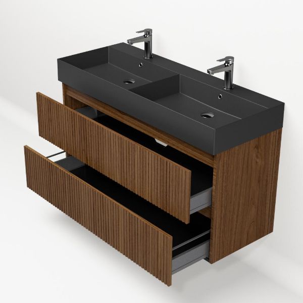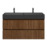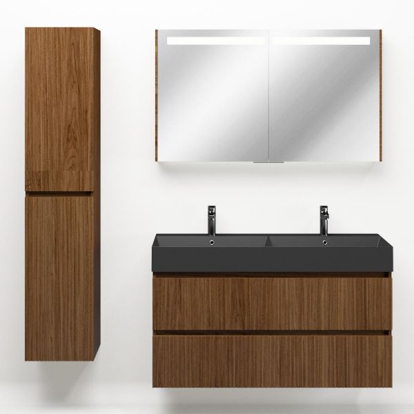 | | Bellanti Silvan /Azzurra badmeubel 120x46 2 softclose laden warm noten greeploos keramische wastafel dubbel antraciet mat met 2 kraangaten |