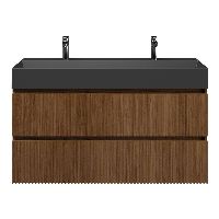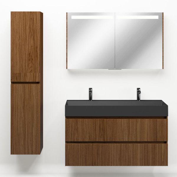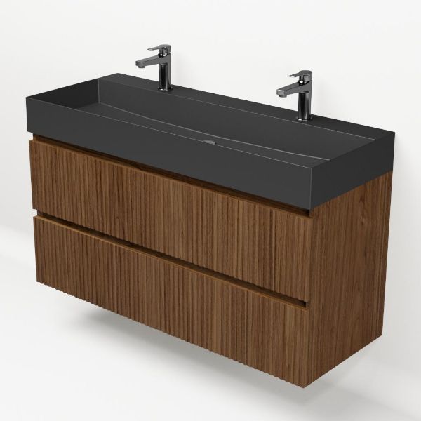 | Bellanti Silvan/Azzurra badmeubel 120x46 2 softclose laden met ribbel - latjes structuur warm noten greeploos keramische wastafel enkel antraciet mat met 2 kraangaten |