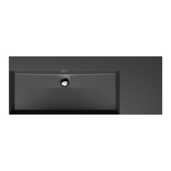 | Bellanti Silvan/Azzurra badmeubel 120x46 2 softclose laden met ribbel - latjes structuur warm noten greeploos keramische wastafel links antraciet mat zonder kraangat |
