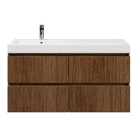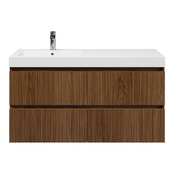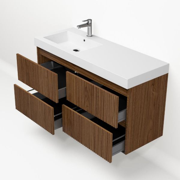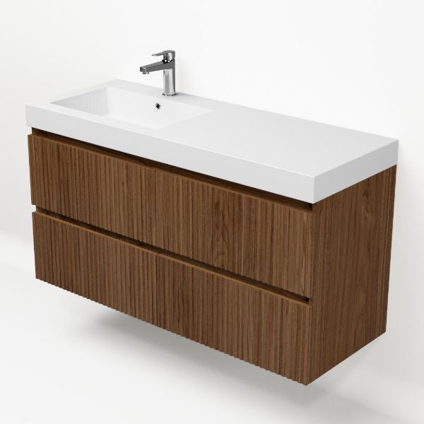 Bellanti Silvan/Esta badmeubel 120x46 4 softclose laden met ribbel - latjes structuur warm noten greeploos polystone wastafel wit met 1 kraangat
