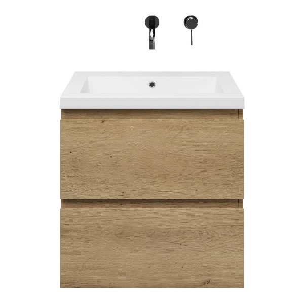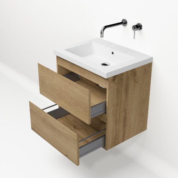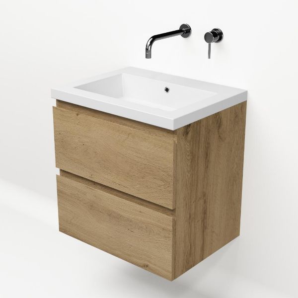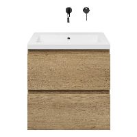 | | Bellanti Gisella/Esta badmeubel 60x46 2 softclose laden warm eiken greeploos polystone wastafel wit zonder kraangaten |