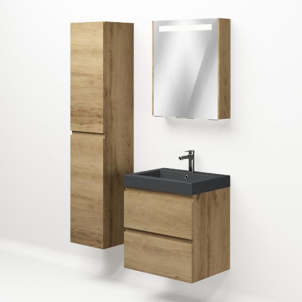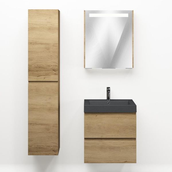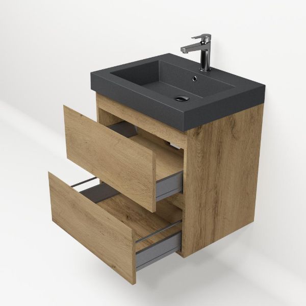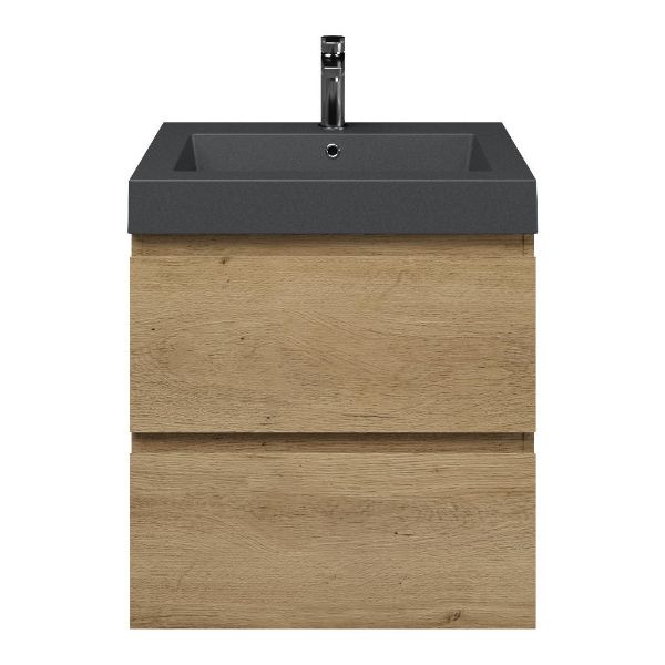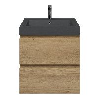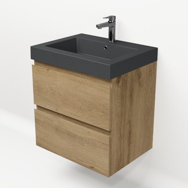 Bellanti Gisella/Esta-Q badmeubel 60x46 2 softclose laden warm eiken greeploos quartz wastafel mat grijs met 1 kraangat