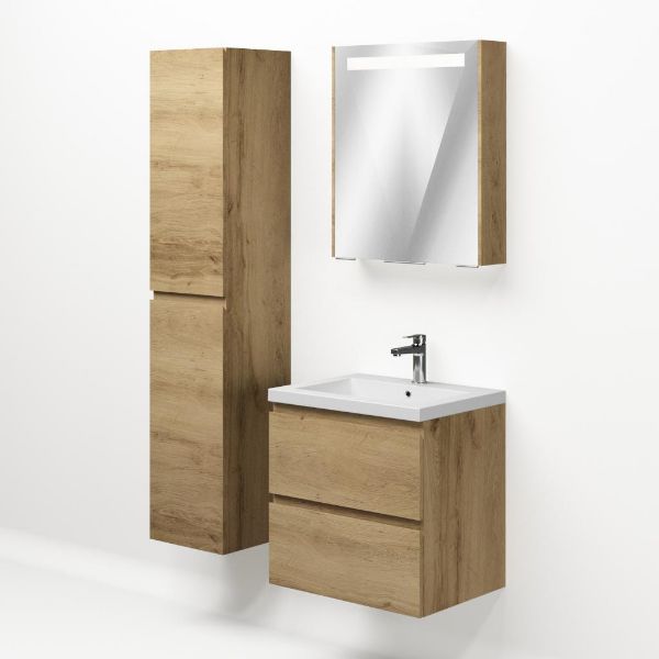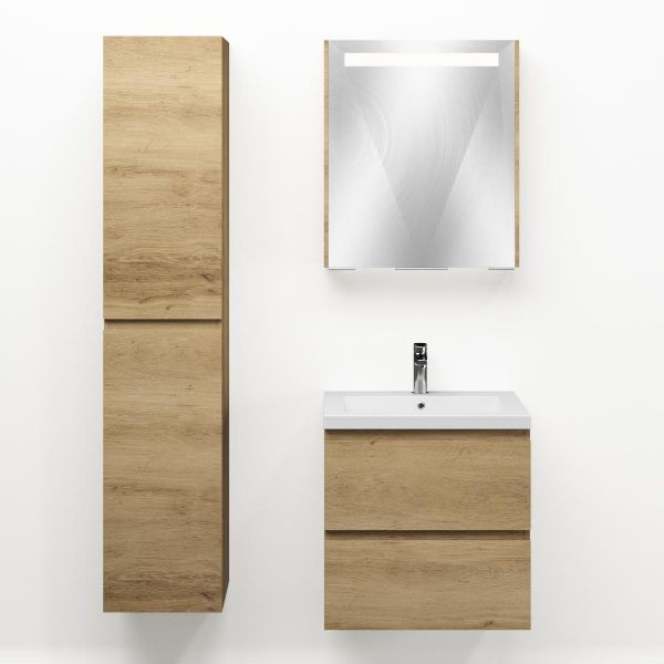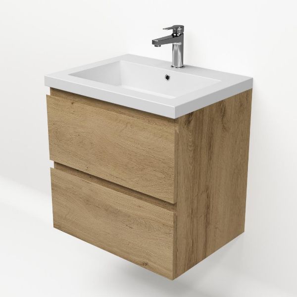 | | Bellanti Gisella/Esta-Q badmeubel 60x46 2 softclose laden warm eiken greeploos quartz wastafel mat wit met 1 kraangat |