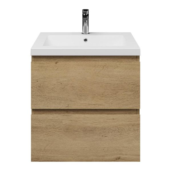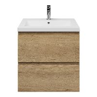 | Bellanti Gisella/Esta-Q badmeubel 60x46 2 softclose laden warm eiken greeploos quartz wastafel mat wit met 1 kraangat |