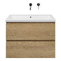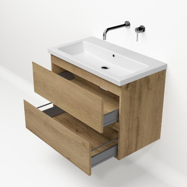 | | Bellanti Gisella/Amelia badmeubel 80x46 2 softclose laden warm eiken greeploos keramische wastafel wit mat zonder kraangaten |