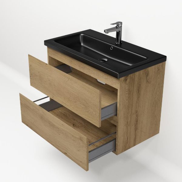 | Bellanti Gisella/Amelia badmeubel 80x46 2 softclose laden warm eiken greeploos keramische wastafel zwart mat met 1 kraangat |