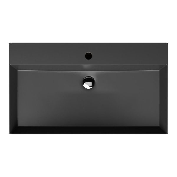 | | Bellanti Gisella/Azzurra badmeubel 80x46 2 softclose laden warm eiken greeploos keramische wastafel antraciet mat met 1 kraangat |