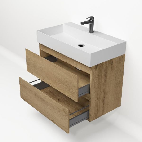 | Bellanti Gisella/Azzurra badmeubel 80x46 2 softclose laden warm eiken greeploos keramische wastafel wit mat met 1 kraangat |