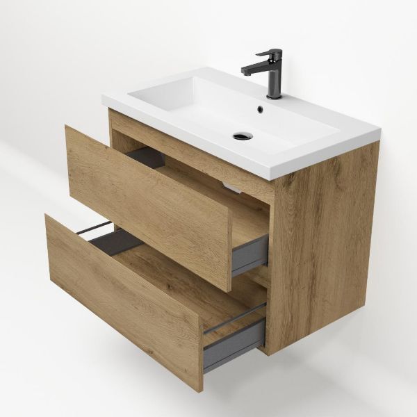 | | Bellanti Gisella/Esta badmeubel 80x46 2 softclose laden warm eiken greeploos polystone wastafel wit met 1 kraangat |
