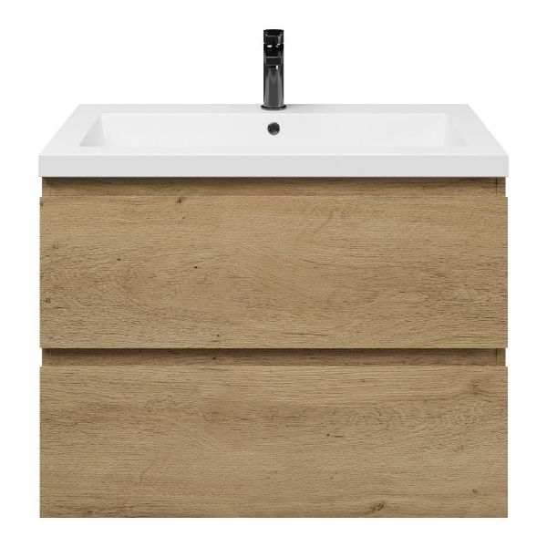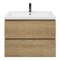 Greeploos badkamermeubel in de kleur eiken warm is 80 cm breed. De wastafel is vervaardig in polystone en heeft de kleur wit. Dit badkamermeubel met deze wastafel is leverbaar tussen de 60 cm t/m 200 cm