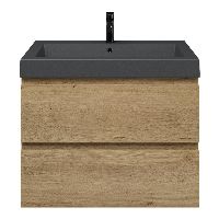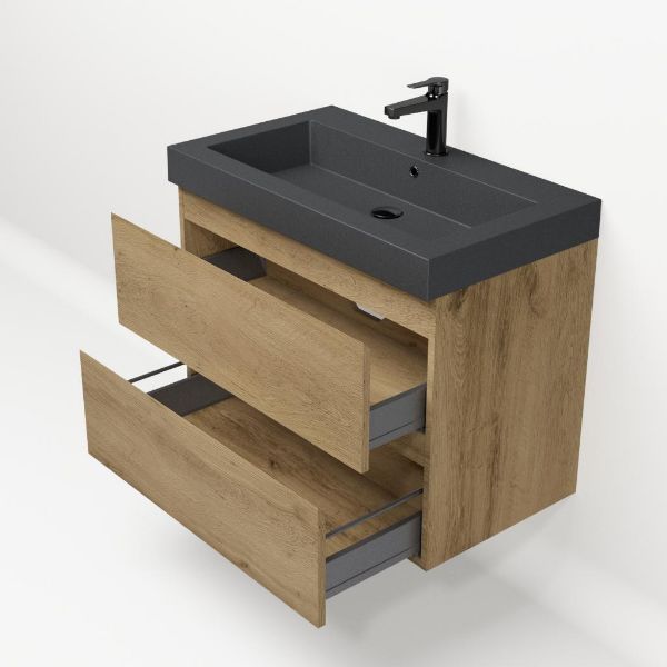 | | Bellanti Gisella/Esta-Q badmeubel 80x46 2 softclose laden warm eiken greeploos quartz wastafel mat grijs met 1 kraangat |