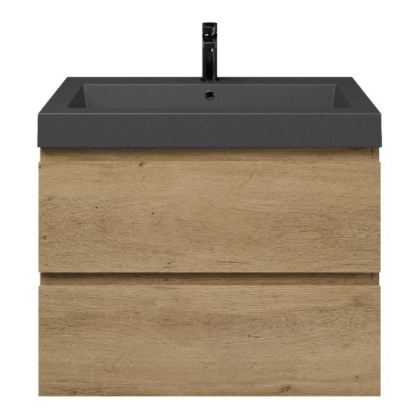 | Bellanti Gisella/Esta-Q badmeubel 80x46 2 softclose laden warm eiken greeploos quartz wastafel mat grijs met 1 kraangat |