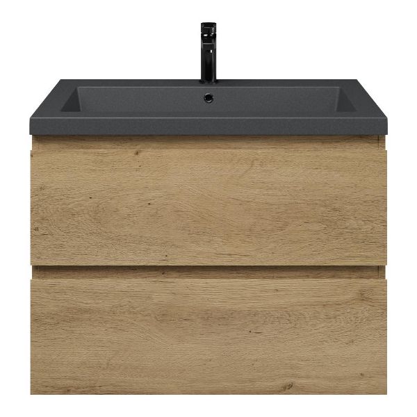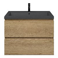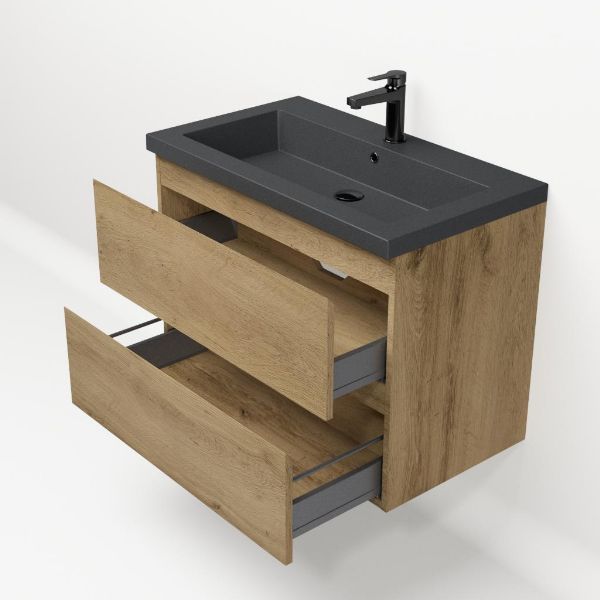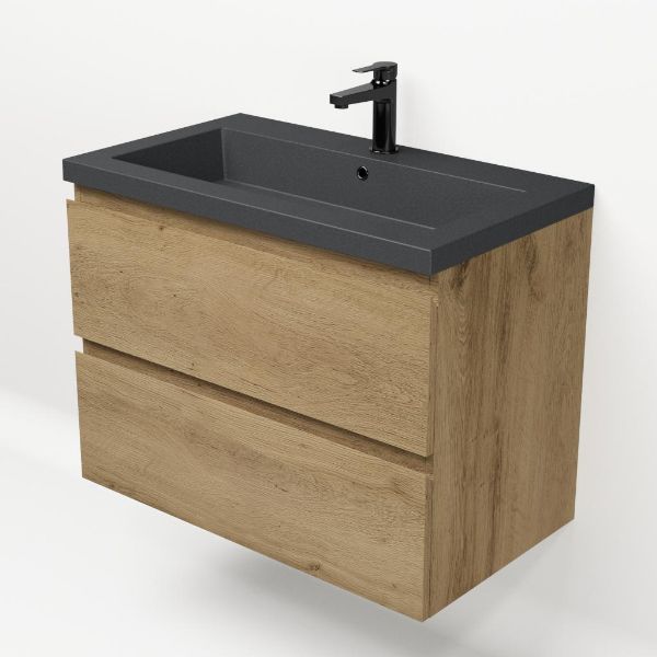 | | Bellanti Gisella/Esta-Q badmeubel 80x46 2 softclose laden warm eiken greeploos quartz wastafel mat grijs met 1 kraangat |